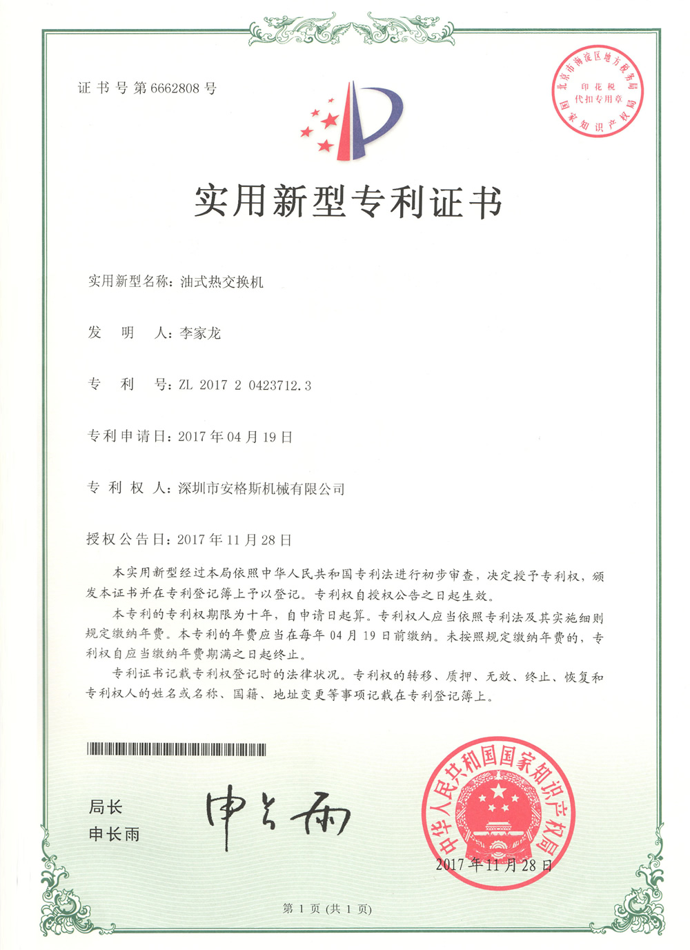 實用專利證書